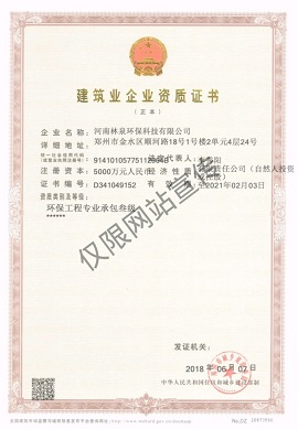 資質(zhì)證書 河南林泉環(huán)保科技有限公司是一家國家高新技術(shù)企業(yè)。公司主要從事環(huán)保工程專業(yè)承包(設(shè)計(jì)、施工、設(shè)備安裝、工藝調(diào)試)一條龍服務(wù),環(huán)境影響評(píng)價(jià),清潔生產(chǎn)審計(jì),環(huán)保技術(shù)服務(wù),生態(tài)文明建設(shè)指導(dǎo)及規(guī)劃等工作。
